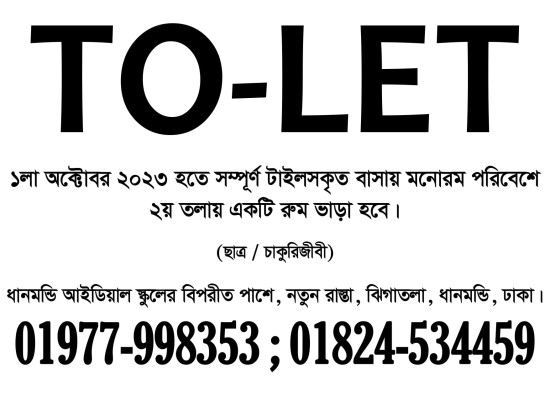 ১টি রুম/ ৩ সিট ভাড়া হবে'।